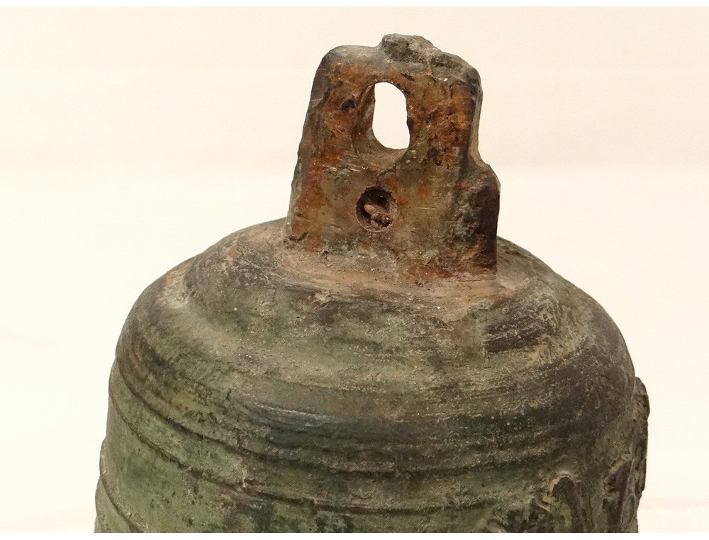 Very nice and rare chapel bell brass *, dated 1699, decorated with a cross or suffering on the body, XVIIth century.