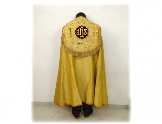 Superb liturgical screed * of gold, silk and cloth, decorated with gold embroidery son floral, chaperone initial IHS House Evellin in Rennes, period first half of the twentieth century.