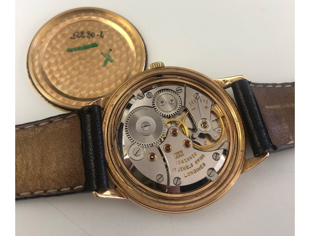 Wristwatch from the Longines brand (Switzerland) in 18-carat solid gold (eagle's head hallmark), mechanical movement (winding), vintage period around 1957 20th century.