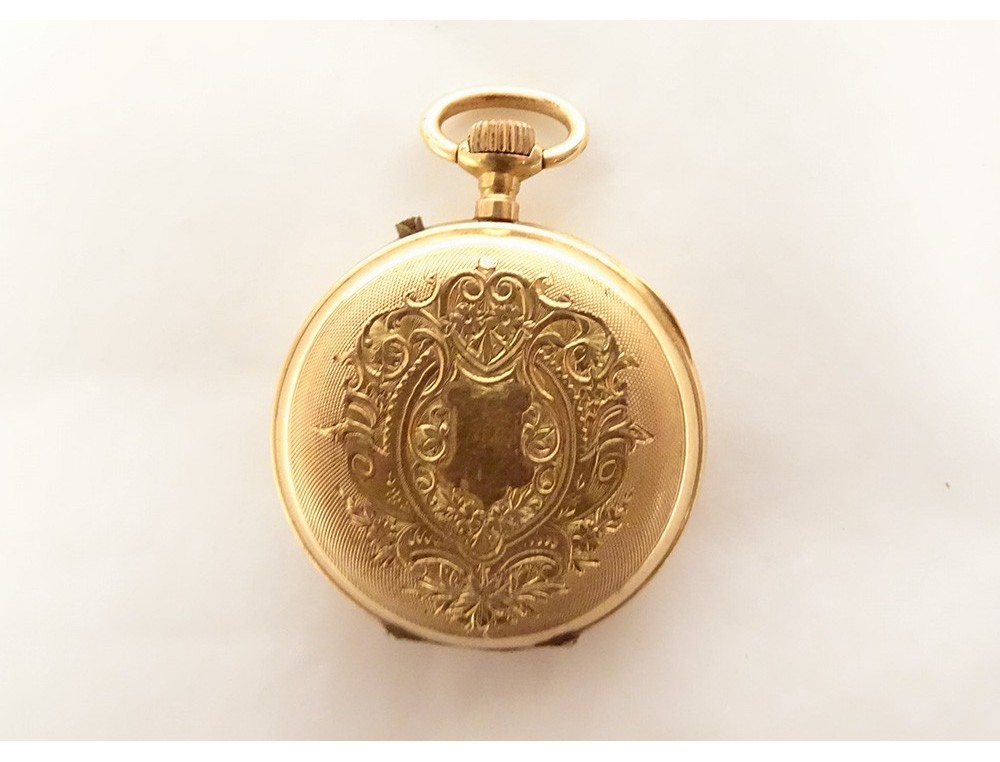 18 carat solid gold neck watch flowers PB 21.42gr Napoleon III 19th century