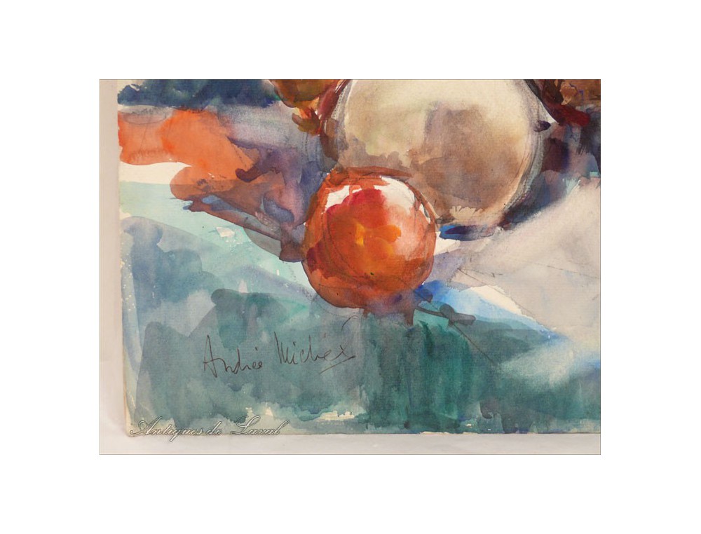 Watercolor of a still life of fruit, painted in the early twentieth century by Michel André *