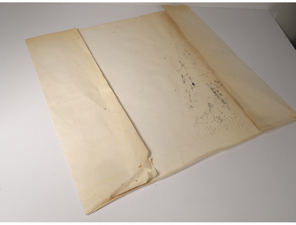 A note: folds on the sides of the paper, a tear in the bottom of the paper, stains and yellowing, see photos.