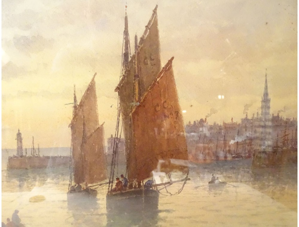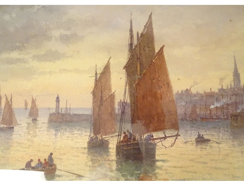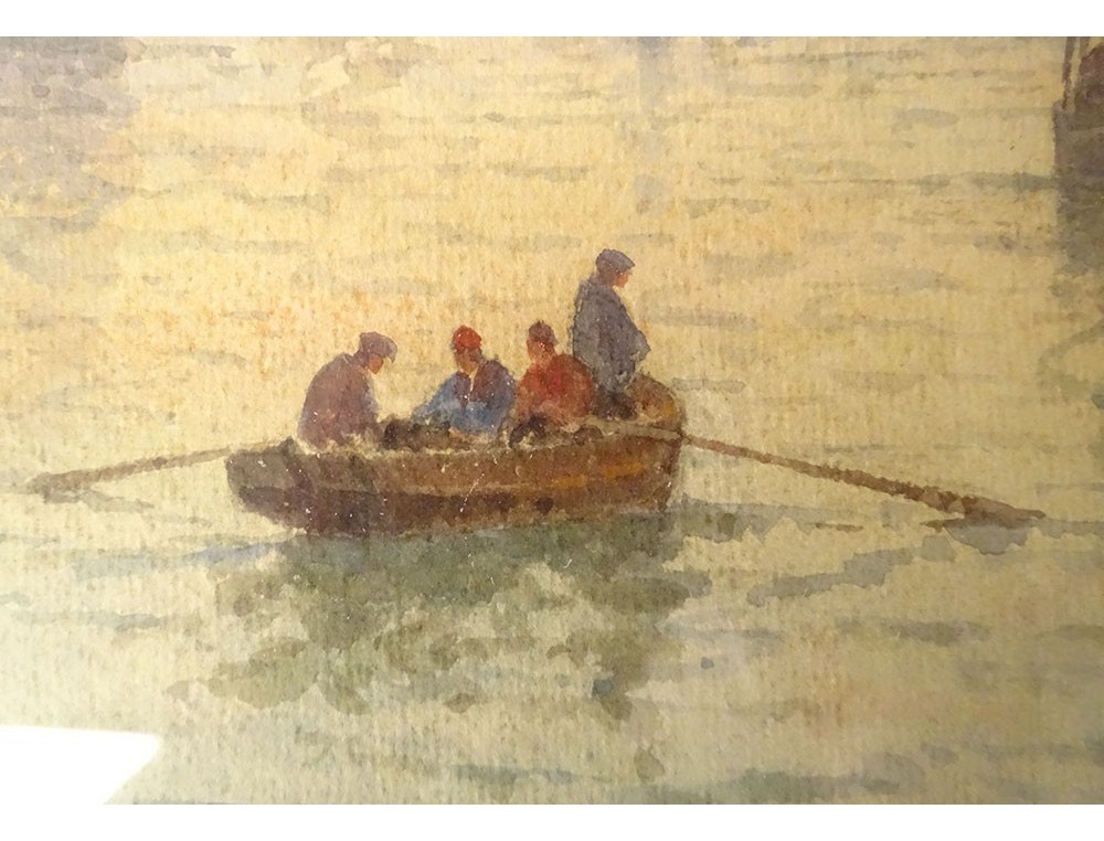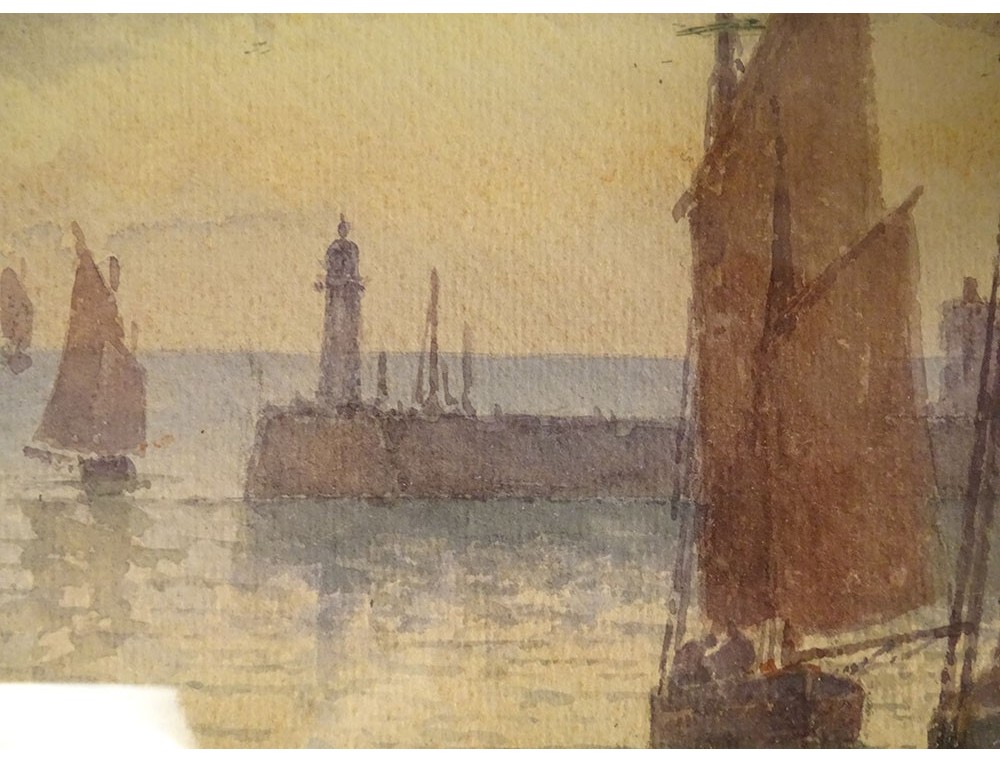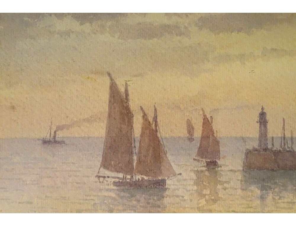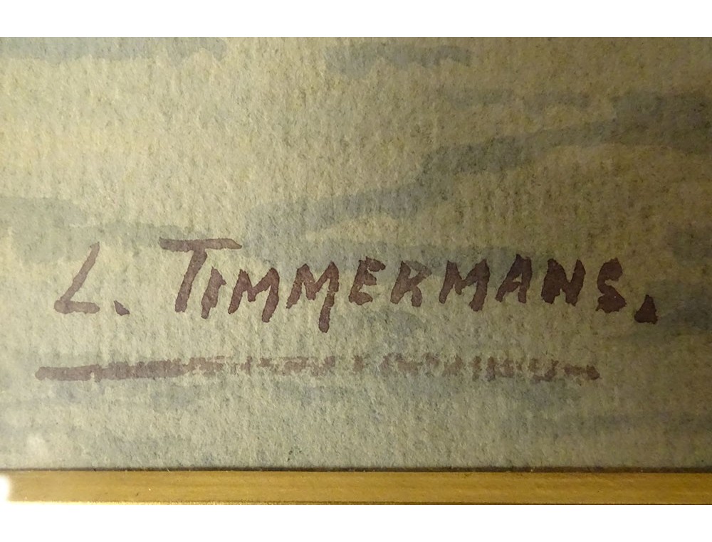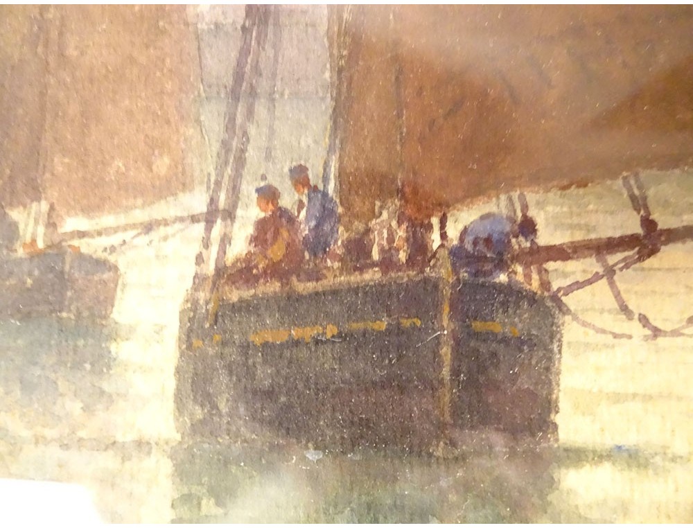 Watercolor signed L. Timmermans* representing a marine landscape, with fishing boats from Concarneau (Brittany), probably tuna boats leaving the port, in a gilded wooden frame, from the late 19th century.