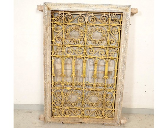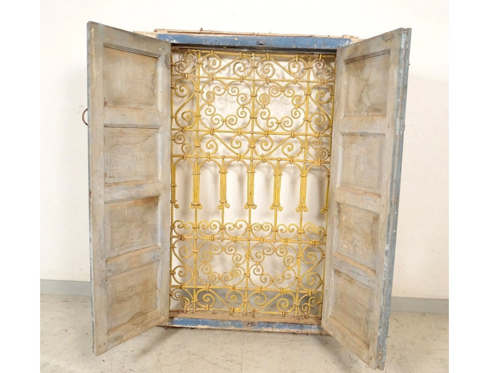 Moroccan wrought iron grille painted wood window Maghreb Morocco Atlas Deco XXth
