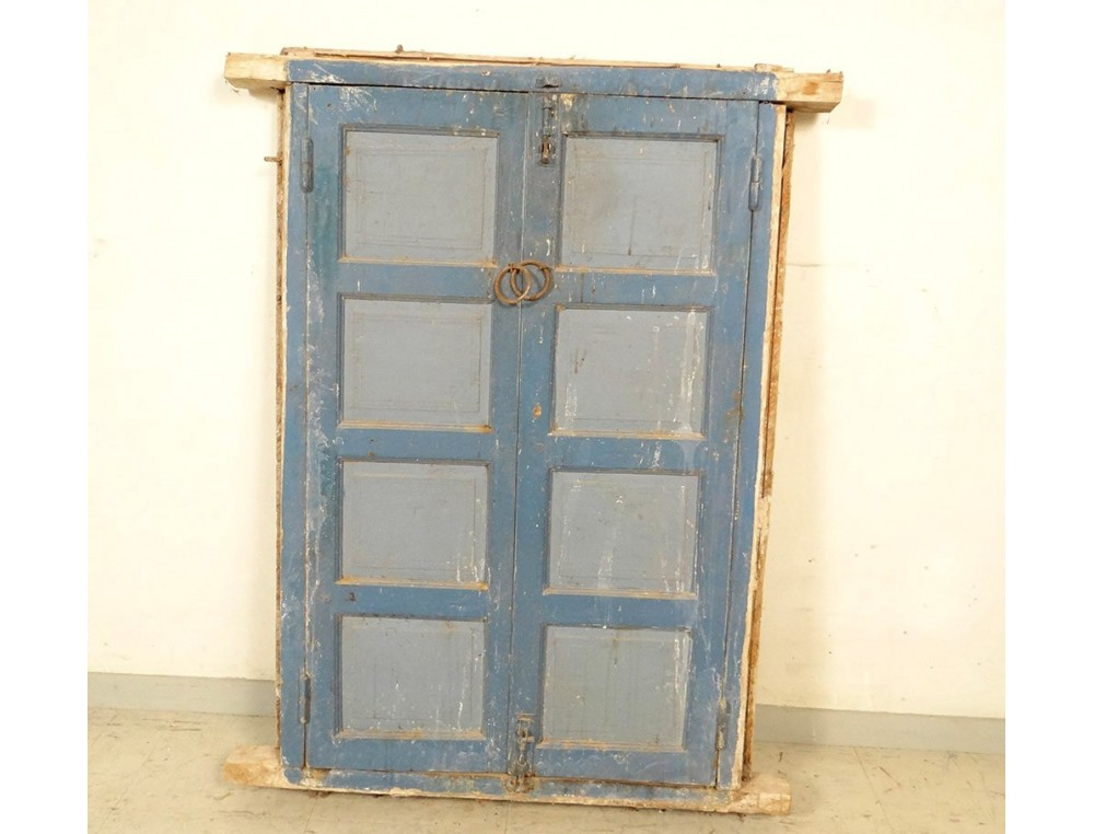 Very nice Moroccan painted wood window shutters, with its wrought iron gate, from Morocco Maghreb Atlas, vintage early twentieth century.