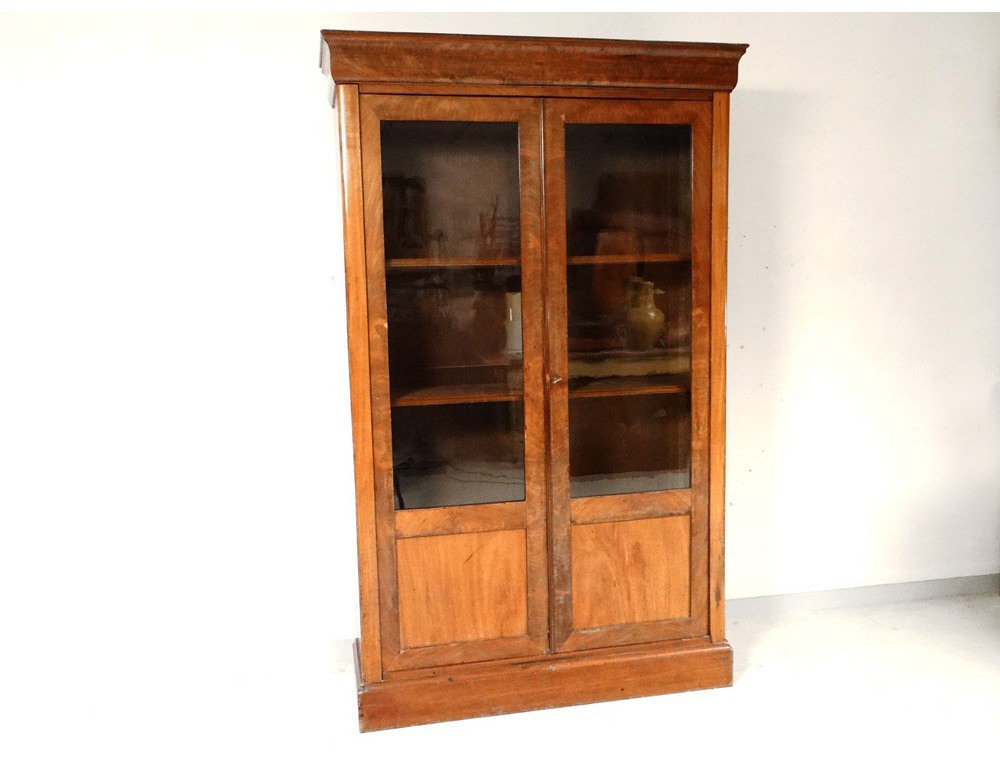 Very nice showcase library plinth mahogany veneer, with 4 shelves, antique restoration Louis-Philippe nineteenth century.
