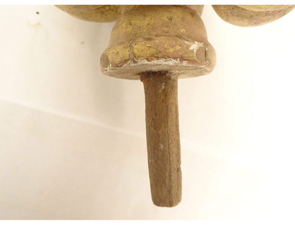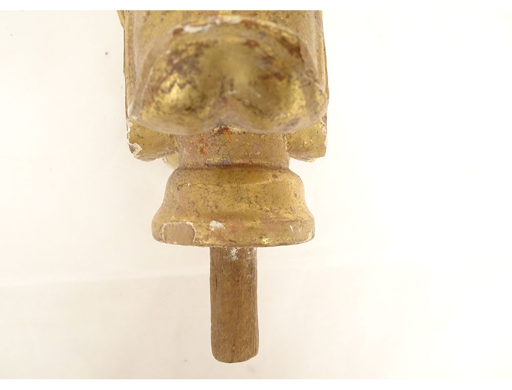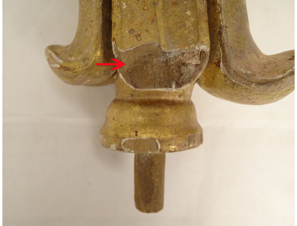 Please note: some accidents and missing pieces of wood in places (see red arrows), some missing pieces and wear to the gilding, see photos.