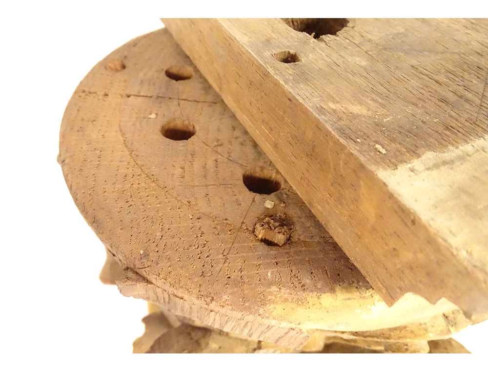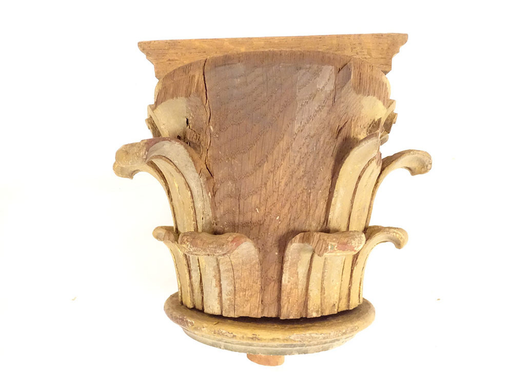 Small Corinthian capital in carved wood with gilded acanthus flowers, 19th century