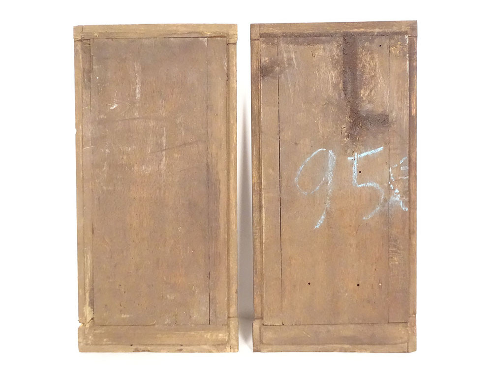 These panels are in good overall condition. They are not a pair; the designs are different.