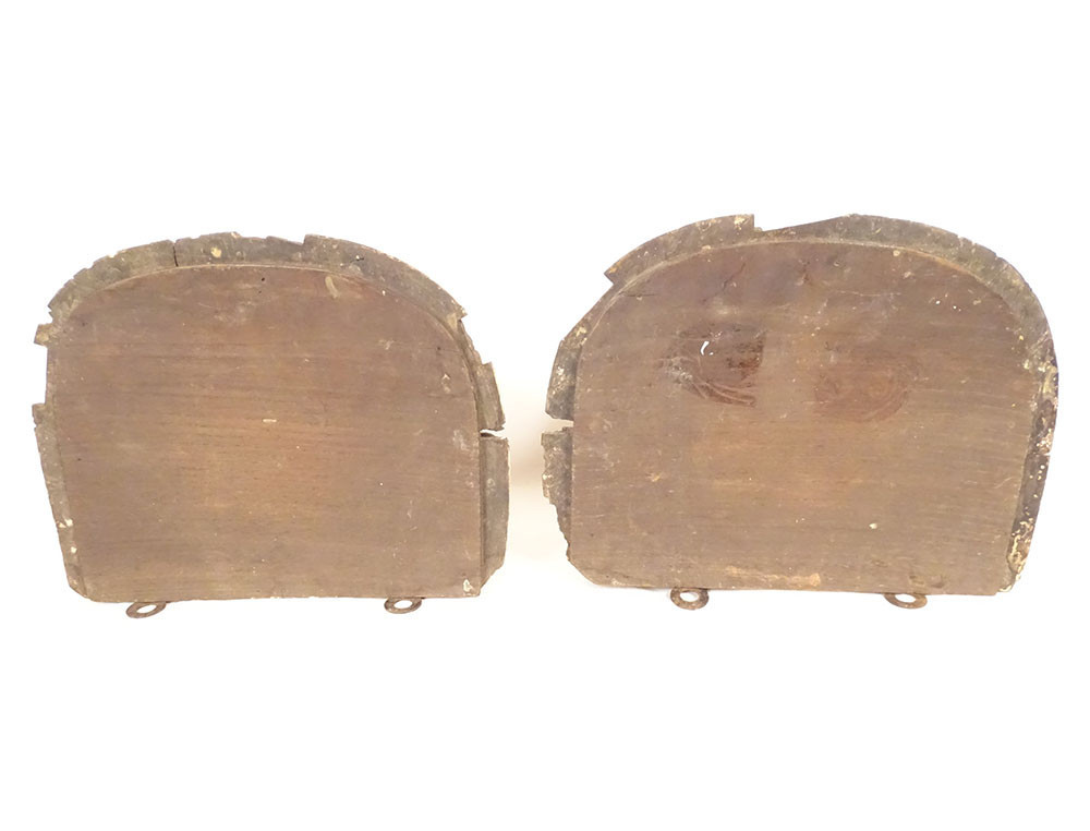 Pair of polychrome carved wood wall brackets with cherub heads and putti, 18th century