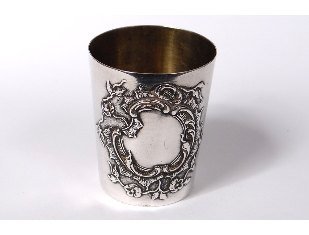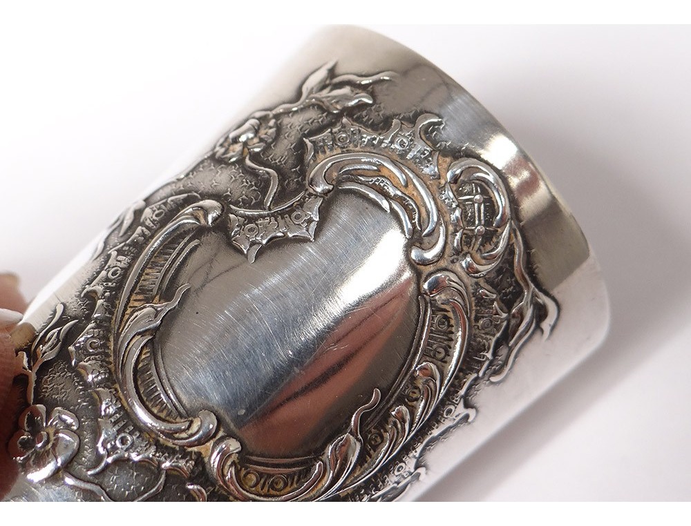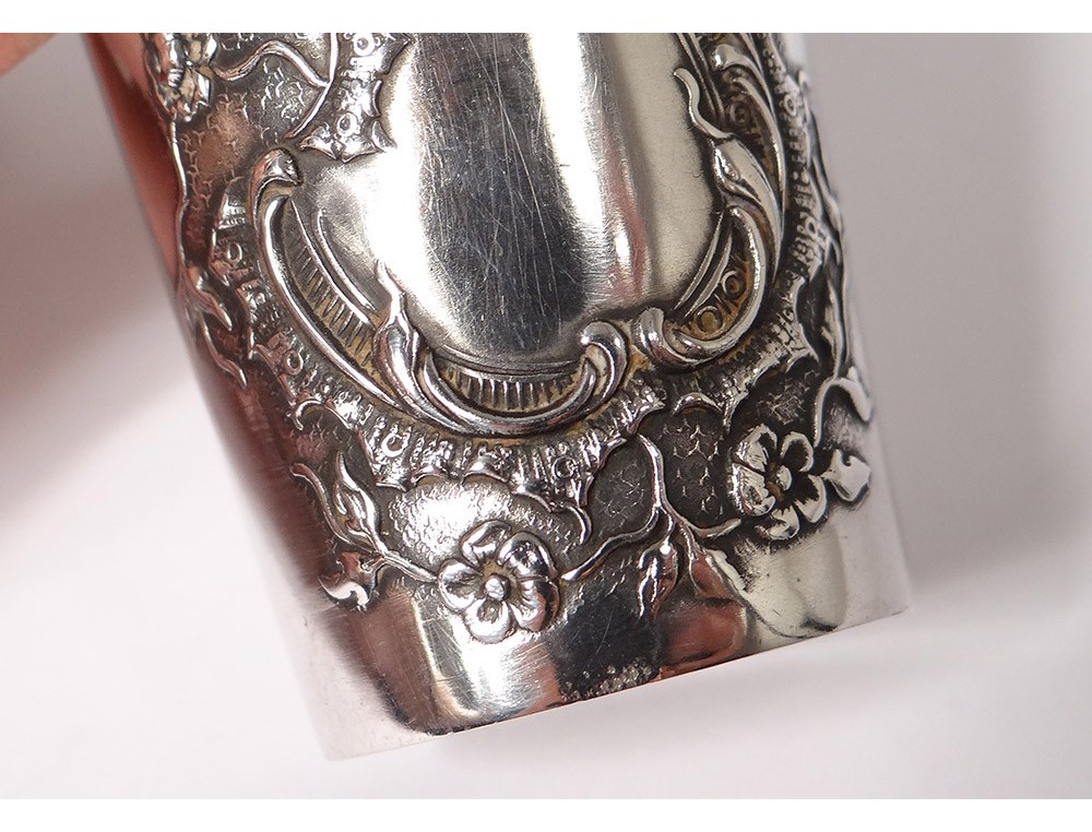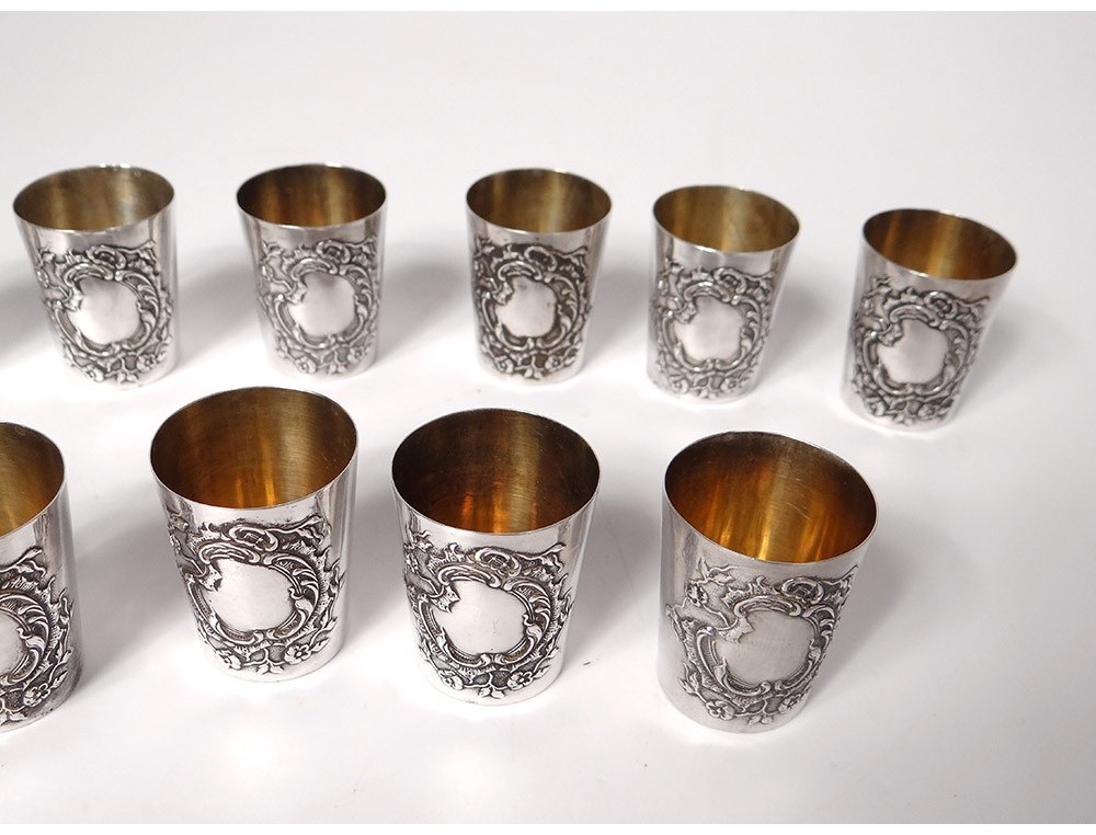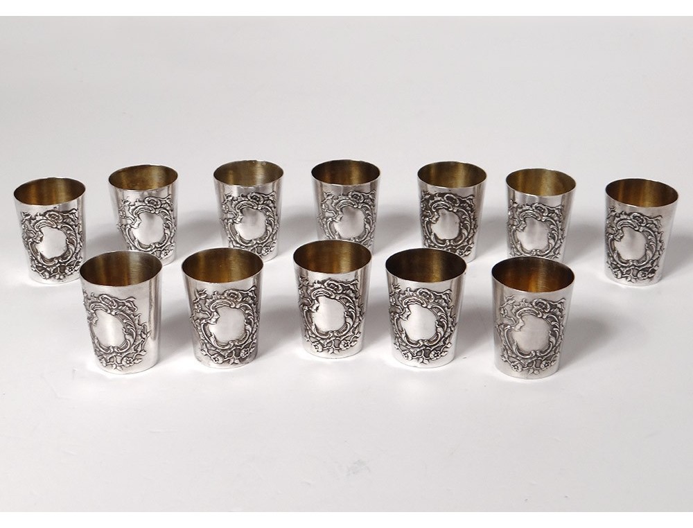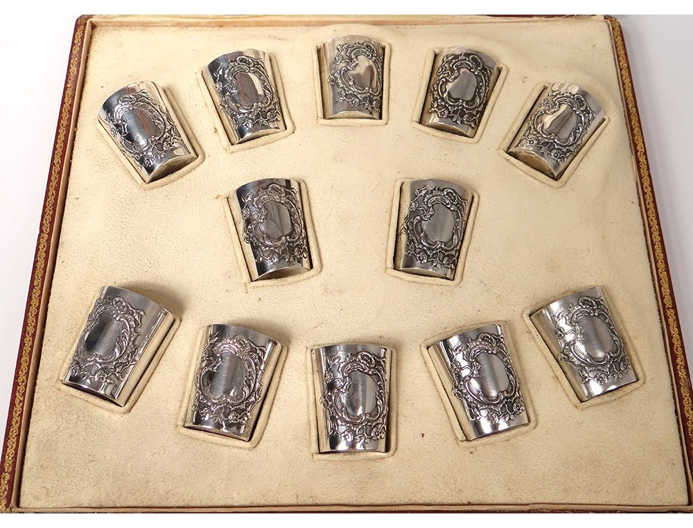 Series of 12 small curons in sterling silver finely chopped decorated with a foliated medallion decorated with small flowers, hallmarked with a weevil and goldsmith's mark, in their original box in chamois leather, Napoleon III nineteenth century .