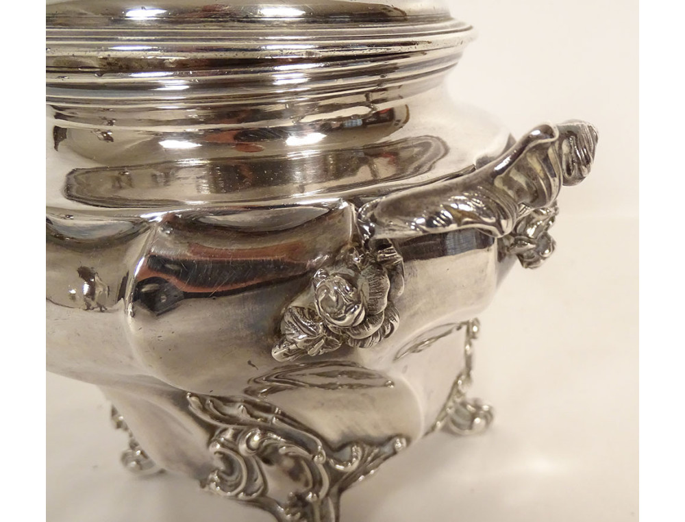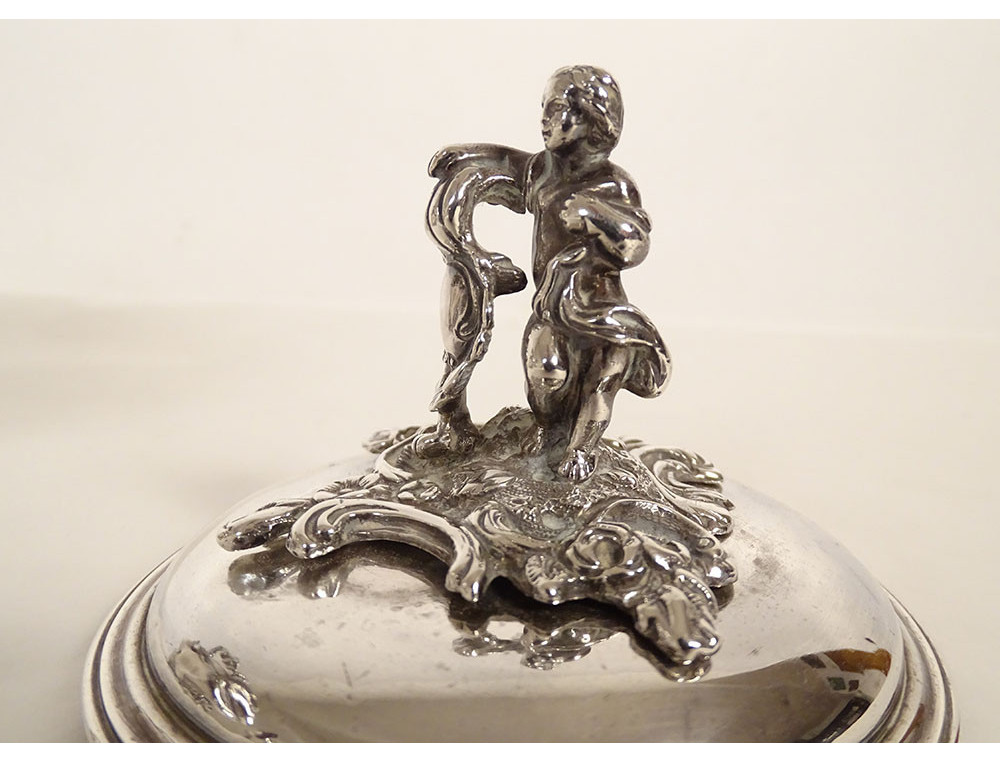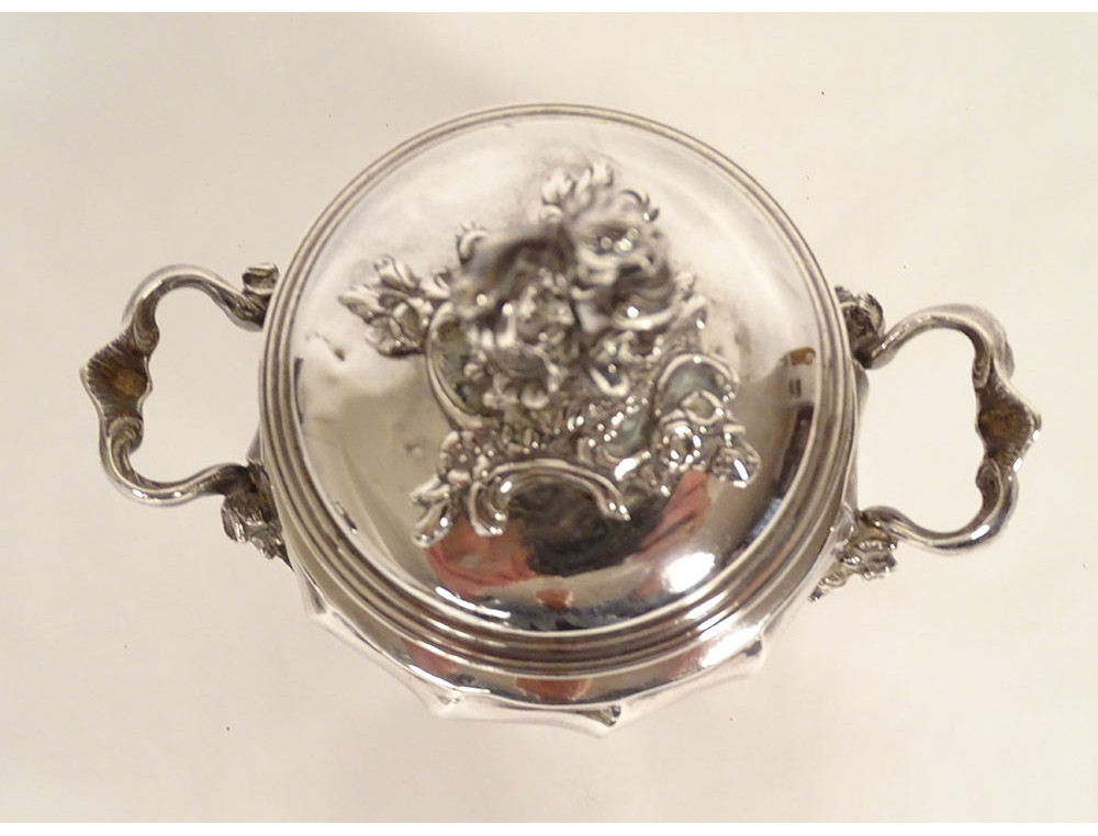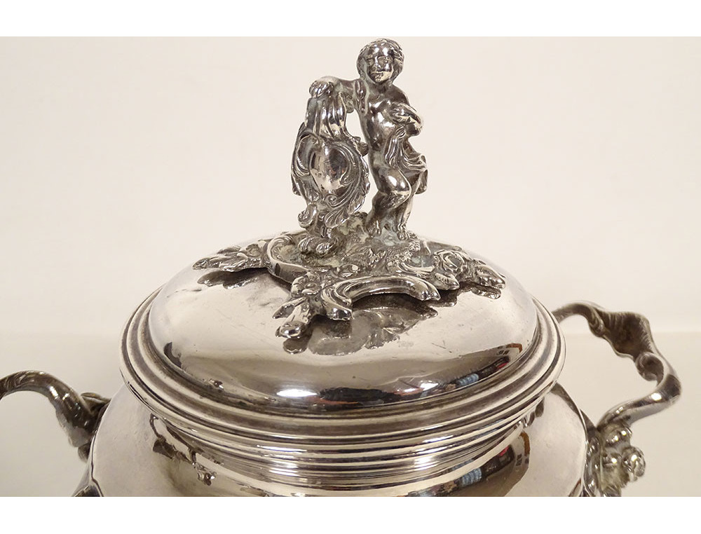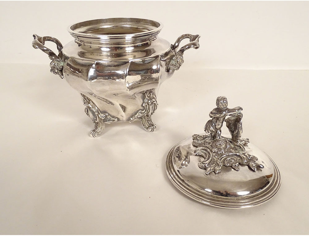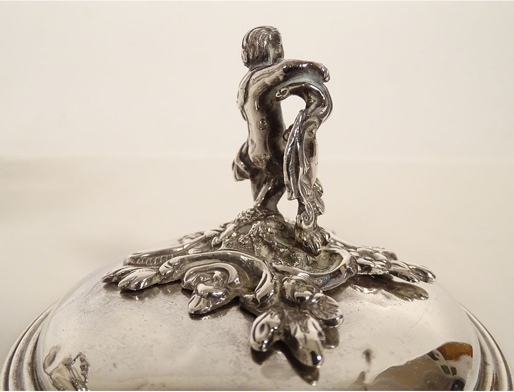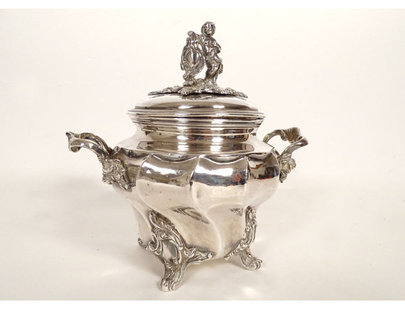 Louis XV sugar bowl in solid silver, Minerva Emile Hugo, cherub, rocaille, 19th century