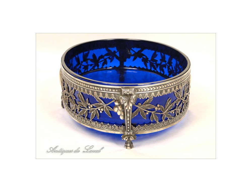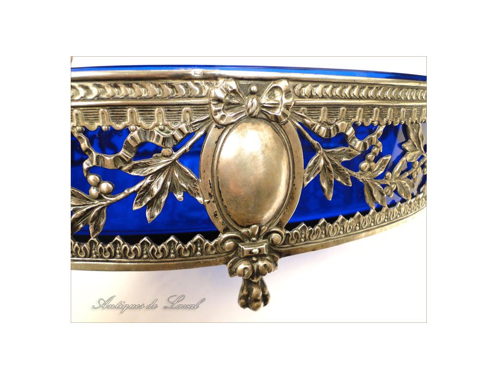 Large bowl finely engraved sterling silver decorated with bows, garlands and foliage, certainly weevil punch * punch on the edge of convenience and imitating those of the Farmers General, glass or crystal blue, Louis XVI, of XIXth century.