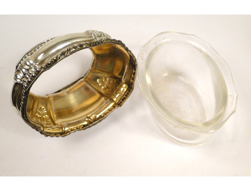 4 Salerons, Salt solid silver punch Minerva, decorated with foliage, Napoleon III nineteenth