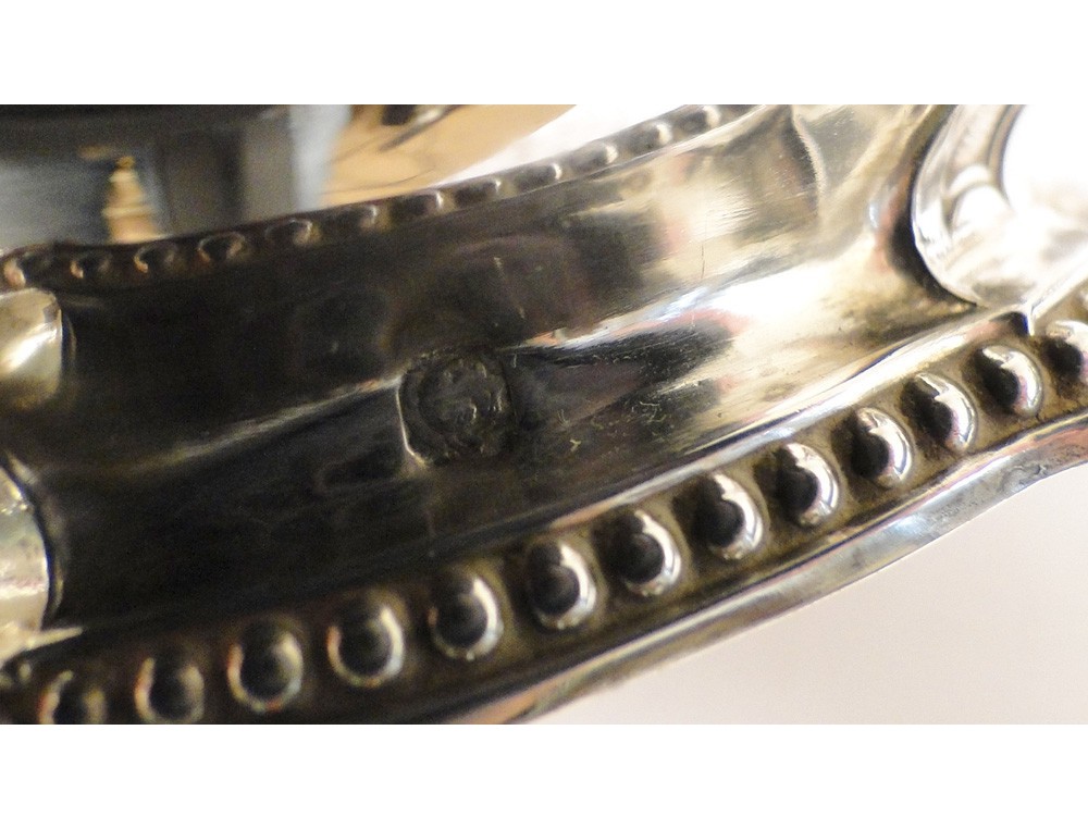 Set of 4 salerons sterling silver chiselled, decorated with foliage and beads, punched Minerva (1st title) and punch goldsmith EP, Napoleon III period, nineteenth century.