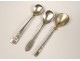 Very nice lot of 3 tablespoons salt in silver chiselled deocr flowers and foliage, stamped Minerva and boar's head of Art Nouveau late nineteenth and early twentieth centuries.