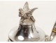 Superb pair of jugs in silver finely carved, decorated with vegetal and floral garlands surrounding a monogram, decorated with a small bird, punched Minerva (1 title) and punch goldsmith Fizaine *, Napoleon III nineteenth century cover .