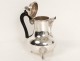 Beautiful sterling silver jug decorated with finely carved shells and scrolls of foliage, stamped Minerva (1 title) and punch goldsmith & son Flamingo * handle blackened wood, XIXth century.