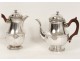 Very nice set of 2 jugs in silver chiselled decorated with shells and foliage, stamped Minerva (1 title) and punch goldsmith, wooden handles, Napoleon III nineteenth century.